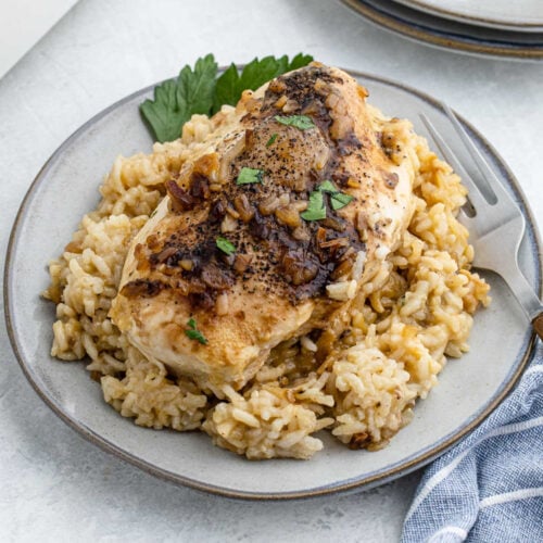 This No Peek Chicken and Rice Recipe is a super easy dinner idea that combines easily in a baking dish. This chicken recipe is loaded with flavor and easy to make.