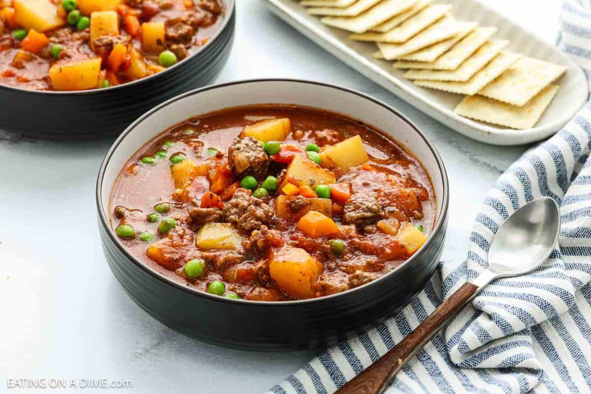 We love stew and slow cooker recipes and this is a nice change from stew recipes we normally make. Since it uses ground beef, the consistency of the soup is a little different and a really amazing dinner idea.