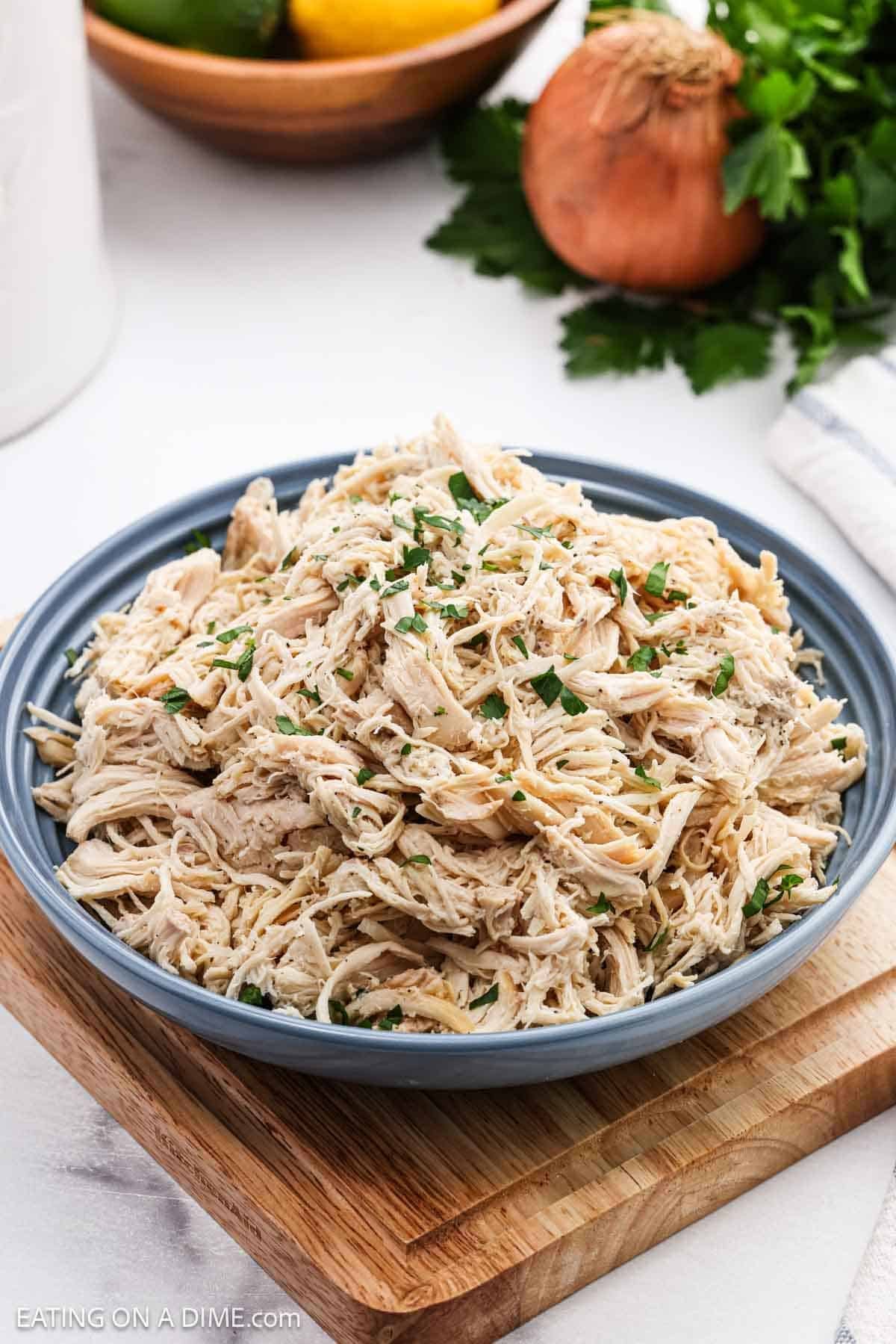I love to keep shredded chicken on hand. It is so convenient for quick meals during the week. The possibilities are really endless for the meals you can make with it.