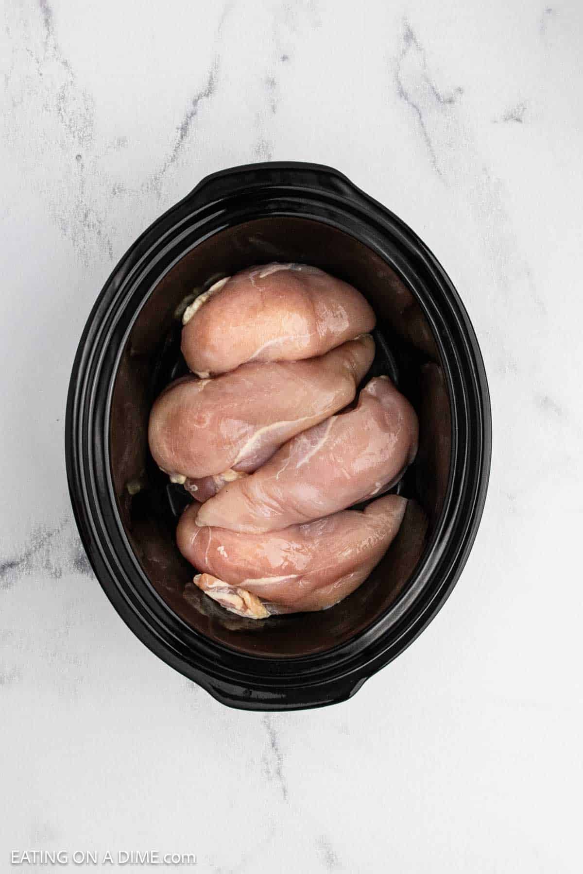 Cooking time will vary depending on the size of your chicken breast and your slow cooker. If cooking the chicken breast on low, the chicken is ready in about 6 hours. If you decide to cook on high the chicken will be ready in about 3 hours.
