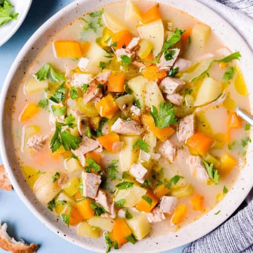 This crockpot turkey soup is the best way to use leftover turkey meals. It is a comforting meal for dinner with your family with loads of vegetables. This recipe includes simple ingredients like garlic powder and Italian seasoning that comes together quickly.