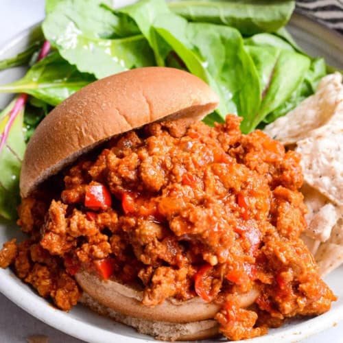 These slow cooker turkey sloppy joes are the perfect meal any time of the week. It includes simple ingredients like lean dark meat ground turkey, onion, and tomato paste. You can also serve this delicious dish over rice or cauliflower rice.