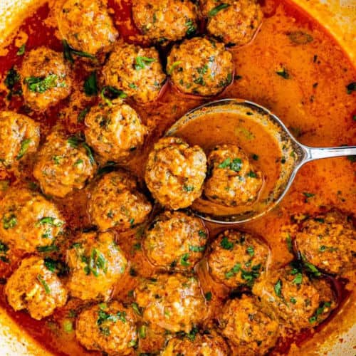 Thai lovers will go crazy over these delicious Thai red curry turkey meatballs. This recipe has a mouthwatering red curry sauce full of Thai flavors. Serve this savory dish alongside a light salad, like a creamy cucumber salad.