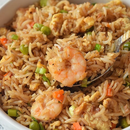 Packed with savory leftover shrimp, peas, carrots, and delicious sauces. This Authentic Chinese Shrimp Fried Rice is a quick and satisfying lunch or dinner option.