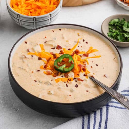 Jalapeño Popper Soup is a soup that is bursting with flavor. If you loved our Jalapeño Popper Chicken, then you’re going to love this soup.