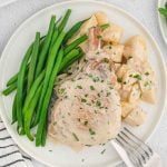 Cover and cook on low for 6-8 hours or on high for 3-4 hours until the pork chops are cooked through. 30 minutes before serving, stir in the heavy whipping cream.