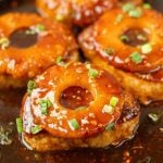 Then add the pineapple slices to the skillet. Cover and simmer for 7-10 minutes until the pork reaches an internal temperature for 145 degrees F. Watch them closely so you do not over cook the pork.